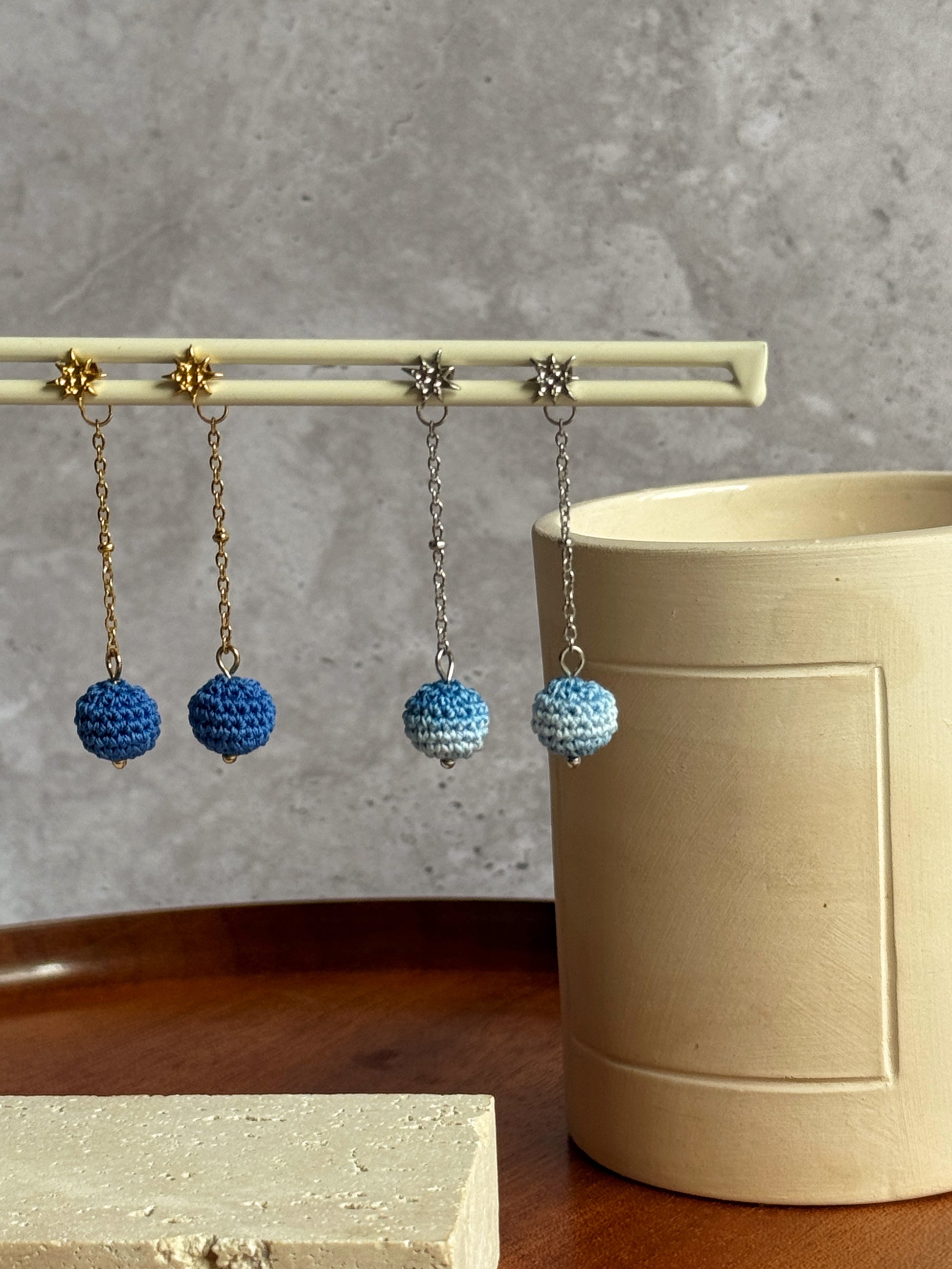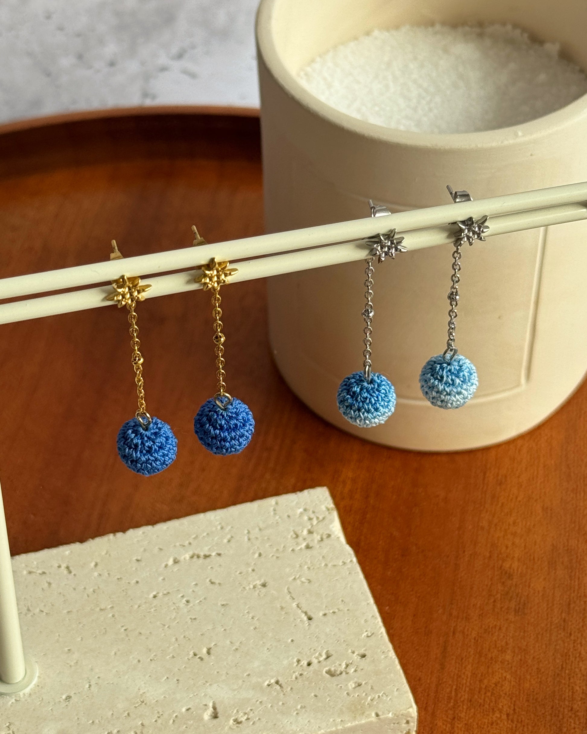 Leurs petites boules de fil crochetées, disponibles dans 30 couleurs, se parent de reflets dorés ou argentés au choix, pour briller à ton rythme.